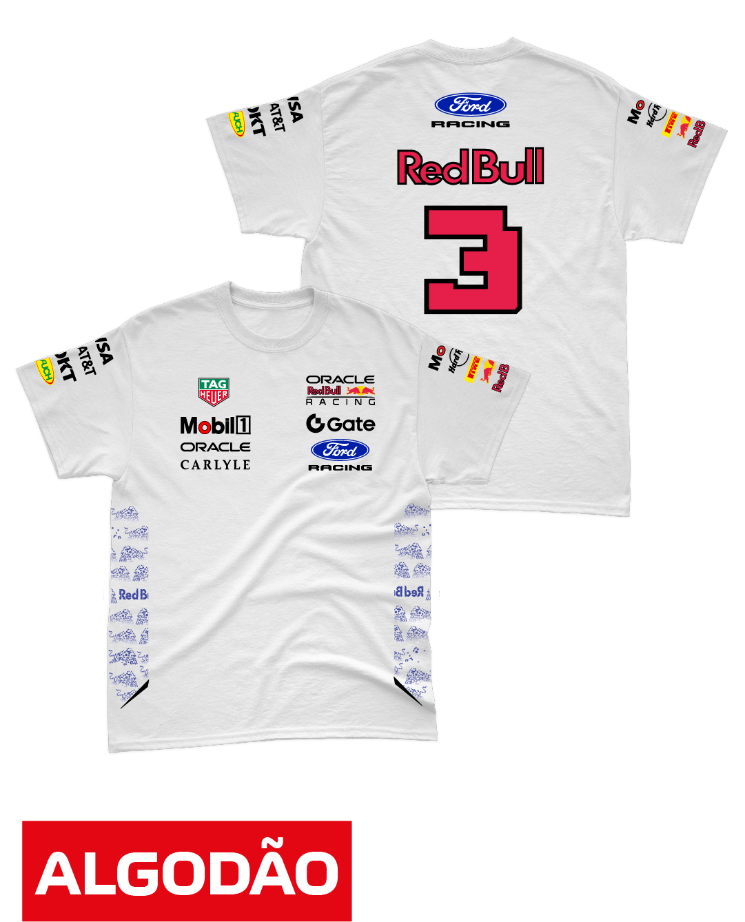 Camiseta Algodão Red Bull Ford 2026 - Max Verstappen - Branco