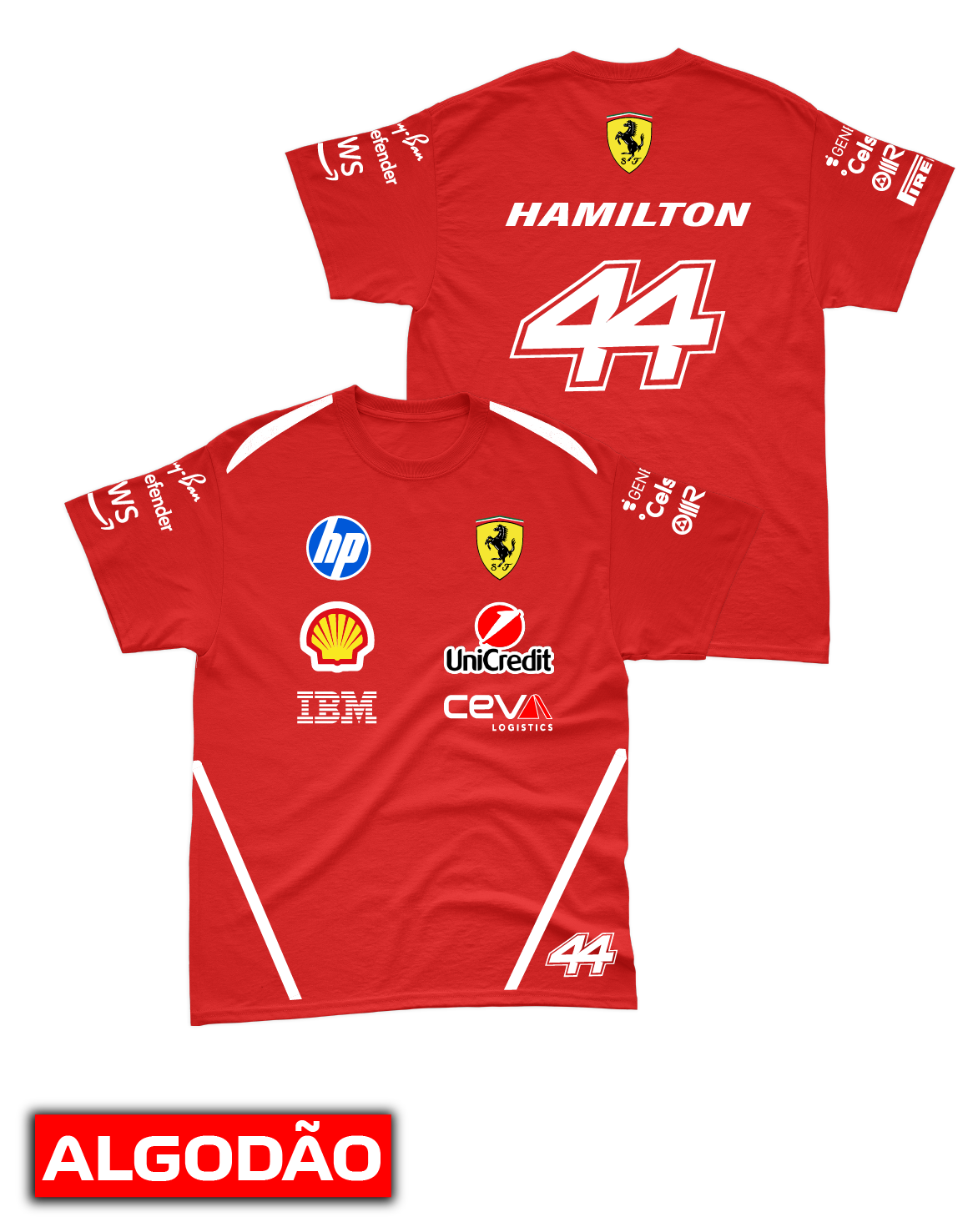 Camiseta Algodão Ferrari 2026 - Lewis Hamilton - Vermelho