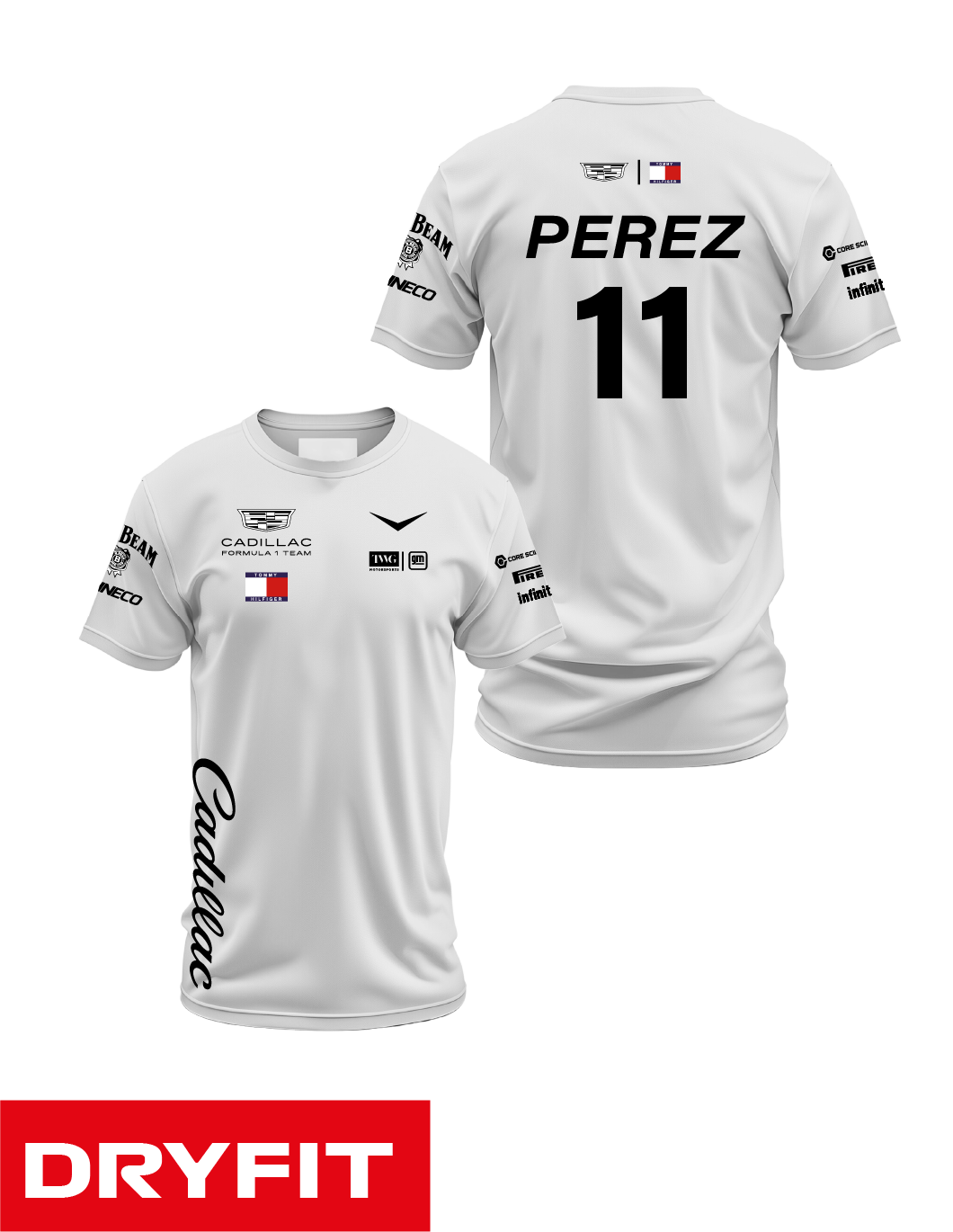 Camiseta Dryfit Cadillac 2026 - Sergio Perez - Branco